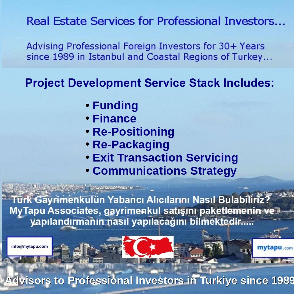 Deep expertise in real estate private placements and cross-border JV mandates in Turkiye since 1989. Our long-standing relationships position us uniquely to deliver efficient and competitive capital. Long history of successful relationships sourcing funding from institutional fund managers, private equity investors, and investment banks in the EU, London, and US markets; and also HNWI individuals for lesser GDV /asset values. Dating back to the early 1990’s, the Principals at MyTapu Associates have advised on placement of primary & secondary equity offerings, and senior, non-recourse, mezzanine, and participation debt finance, for small projects, Turkiye’s leading Corporate names, and Sovereign. Recent and active connections to large-scale funding sources in the GCC region, providing access to relationship-driven capital that is often faster and more flexible for Turkish real estate opportunities. Financing has included innovating the best Developer Finance interests rates and best in market terms achieved, delivering construction finance at 91% GDV funded over an 18 month duration, non-recourse, without balance sheet qualification requirements, asset liens (kefalet), nor constructor credit rating criteria.