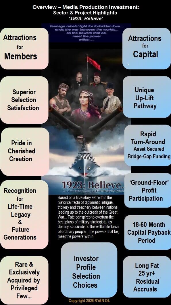 Turkish Film /TV ‘Diizi’ Investors… Wealth Creation via Profit Participation... Satisfaction from knowingly making smart investing….Gratification is more than just a prestigious talking point. Dizi Collectors' Shares $ 500- $ 10,000Dizi Producer Shares $10,000- $ 200,000Founder Shares $ 1,000,000 - $10,000,000 To review details of this profit participation, or request more information, or updates from our NewsLetter...Technological changes have created a huge increase in demand for film from Streaming Services and new distribution channels, meaning film is both more profitable and less risky than 20 years ago. Istanbul is a large international film production centre and exports to more than 100 countries. An investment in film offers an income yield and profitability much higher than residential real estate. Investing in this very lucrative sector is available only for the privileged few, which includes MyTapu Associates, due to our long standing investment activities in a wide range of asset classes in both Turkiye, New York and London since the 1980's. Investors may receive updates on opportunities in film investment by providing an email address below